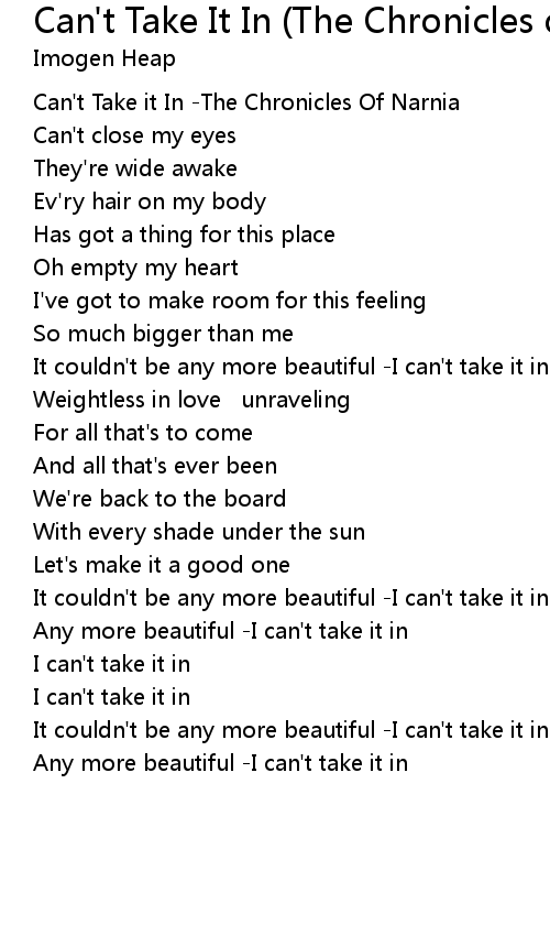 Song Can't Take It In (The Chronicles of Narnia: The Lion, the Witch and the Wardrobe)