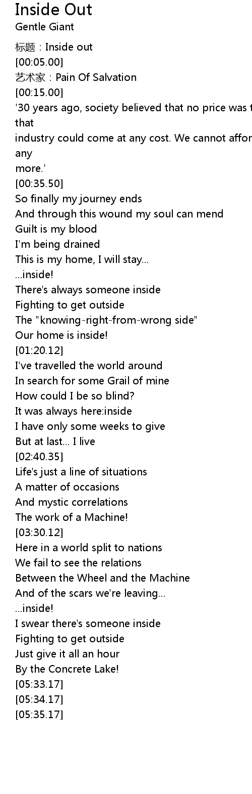 | [00:10.00] | 艺术家:Pain Of Salvation |