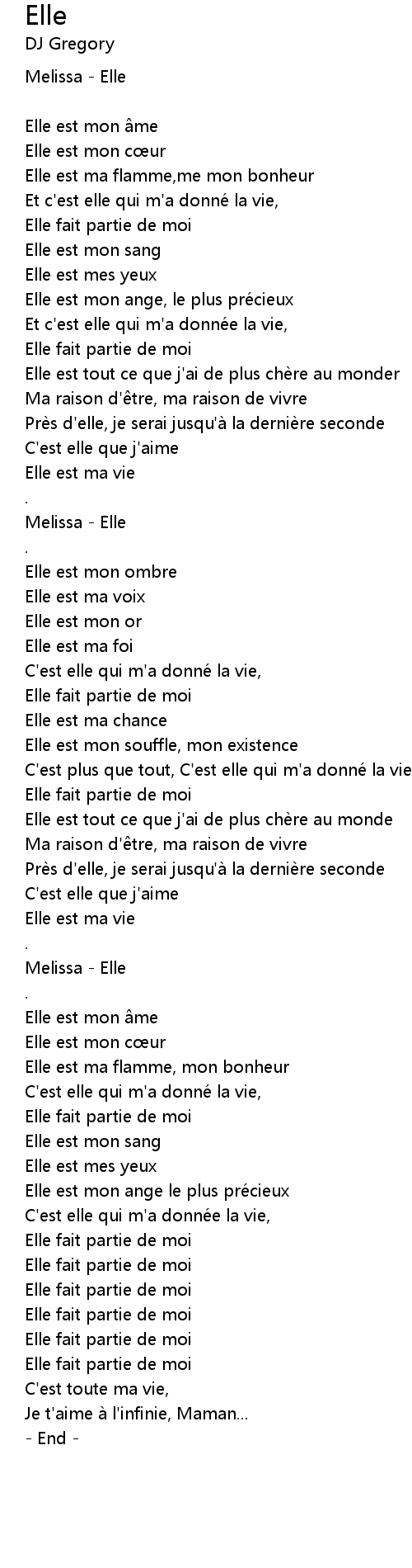 | Elle est tout ce que j' ai de plus chè re au monde | |
