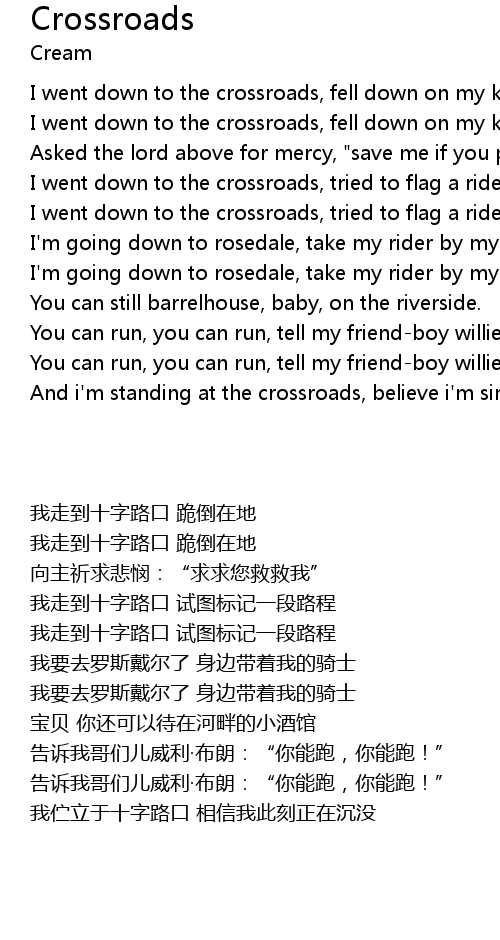 And i'm standing at the crossroads, believe i'm sinking down. |