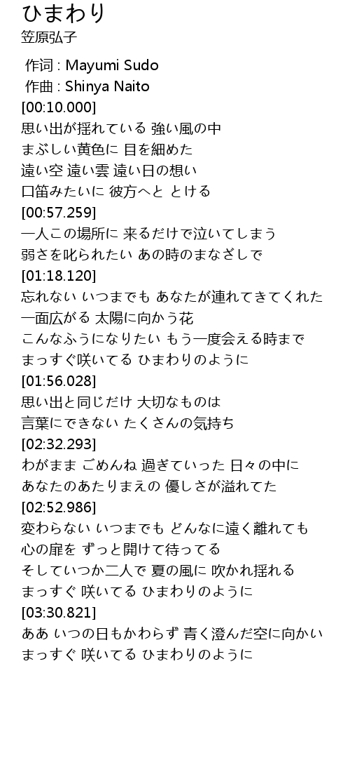 | [03:42.167] | まっすぐ 咲いてる ひまわりのように |