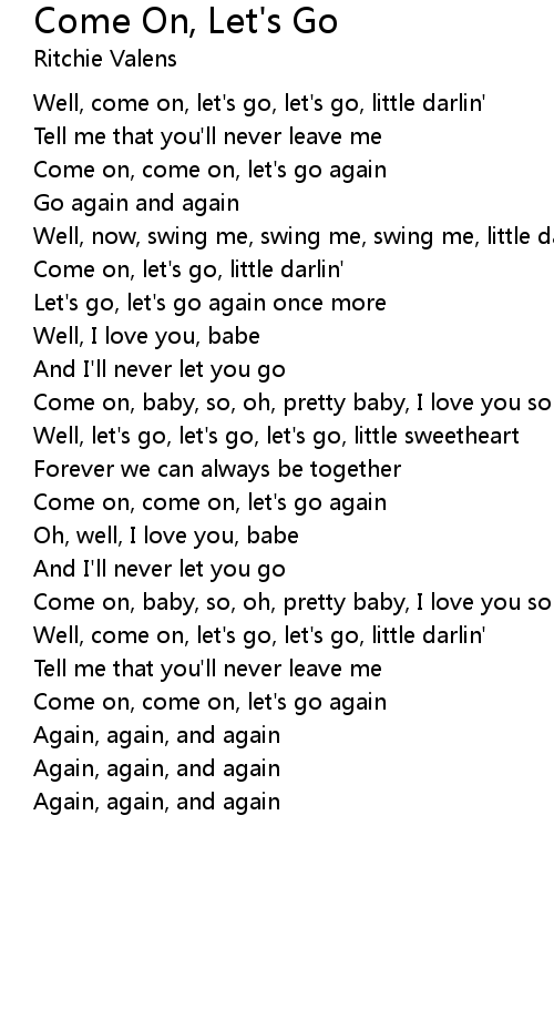 Well, come on, let's go, let's go, little darlin' |