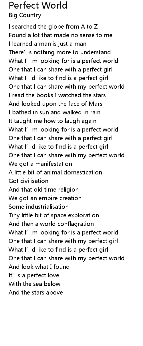| What I' m looking for is a perfect world | |