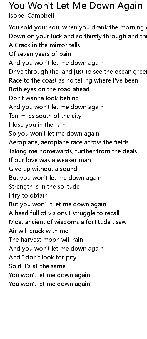 | You won' t let me down again |