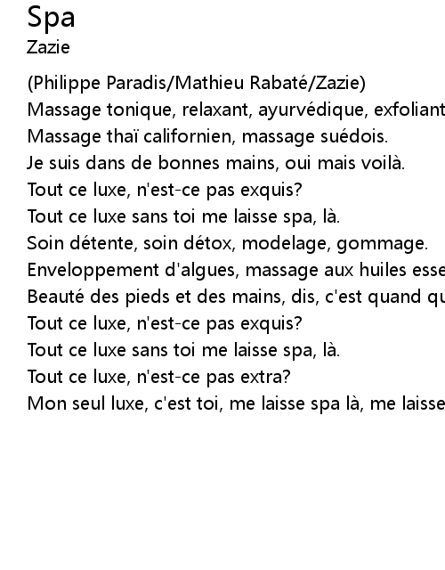 | Mon seul luxe, c' est toi, me laisse spa la, me laisse spa. |