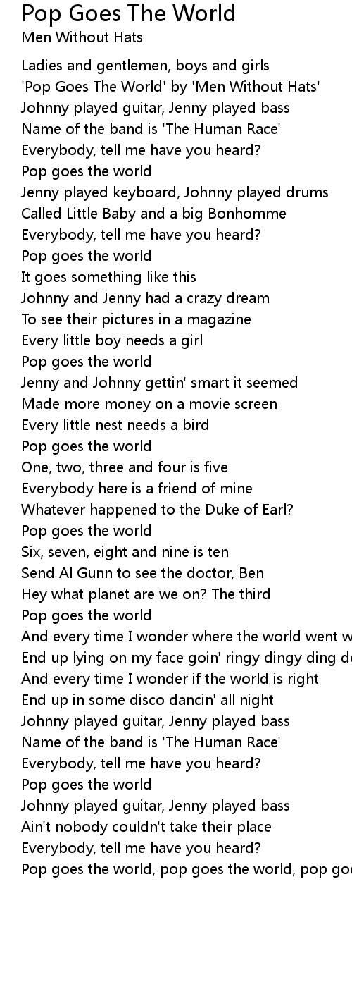 Pop goes the world, pop goes the world, pop goes the world |