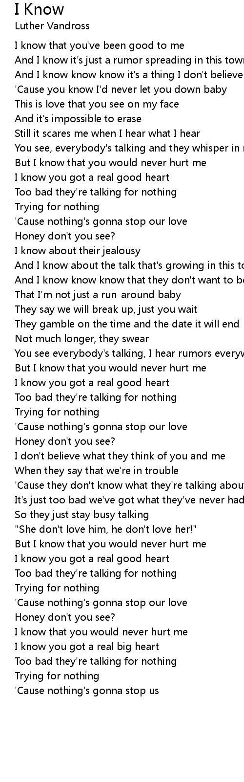 I know that you would never hurt me |