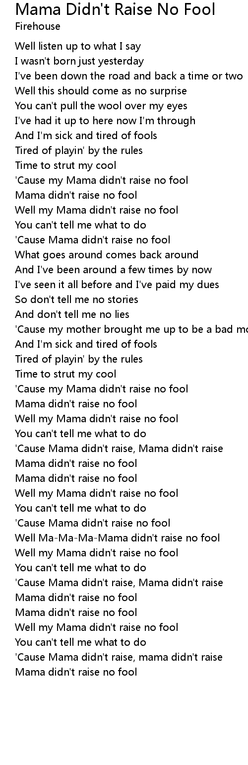 Well Ma-Ma-Ma-Mama didn't raise no fool |