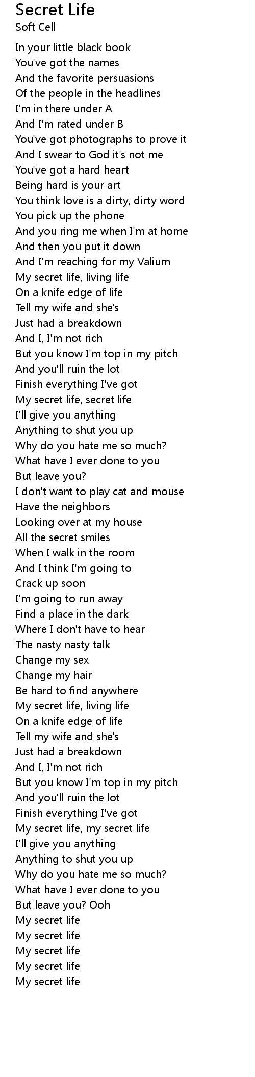 Secret Life Lyrics