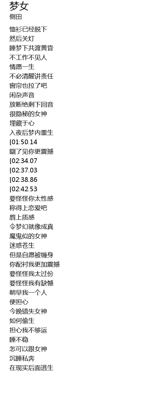 | [03:13.23] | 今晚错失女神 |