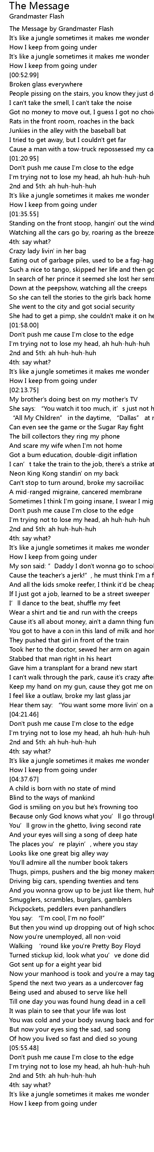 | [00:00.00] | The Message by Grandmaster Flash |