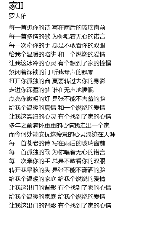 | [03:01.0] | 给我个温暖的家庭 给我个燃烧的爱情 |