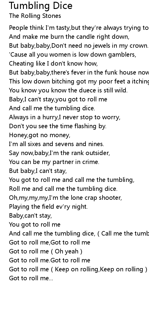 | [02:23.598] | And call me the tumbling dice, Call me the tumbling |