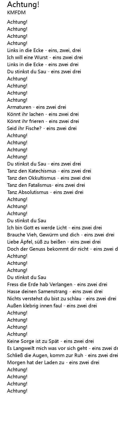 | Es Langweilt mich was vor sich geht eins zwei drei | |