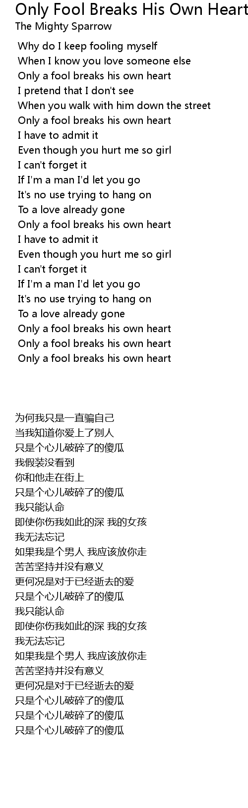 Song Only Fool Breaks His Own Heart