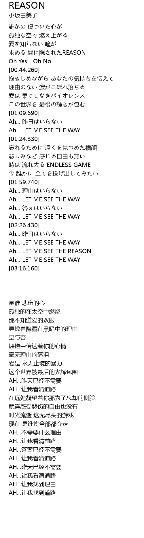 | [00:31.620] | 求める 闇に隠されたREASON |