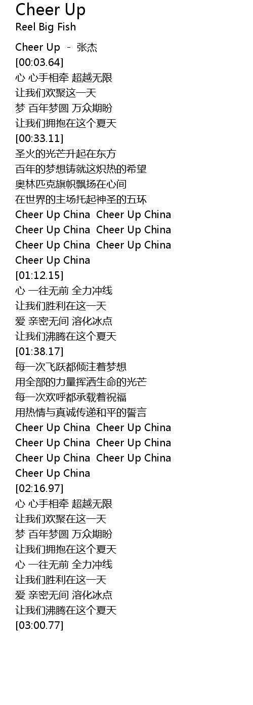 | [02:00.46] | Cheer Up China Cheer Up China |