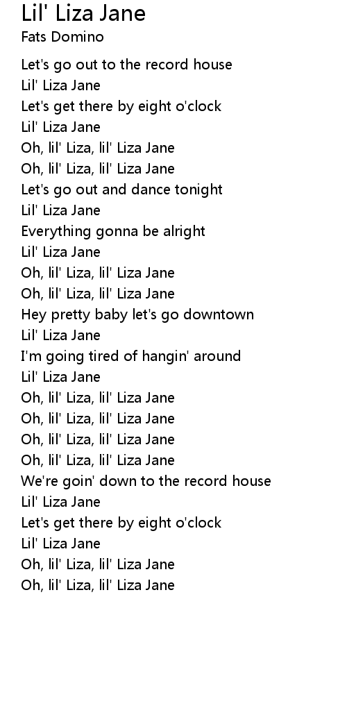 Oh, lil' Liza, lil' Liza Jane |
