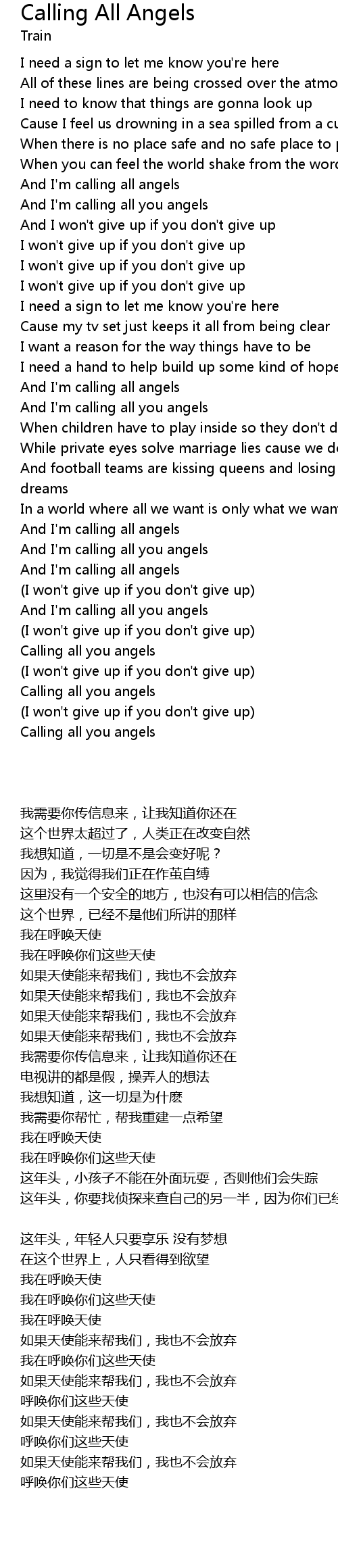 Calling All Angels Lyrics