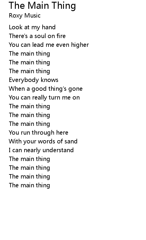 | Song | The Main Thing |