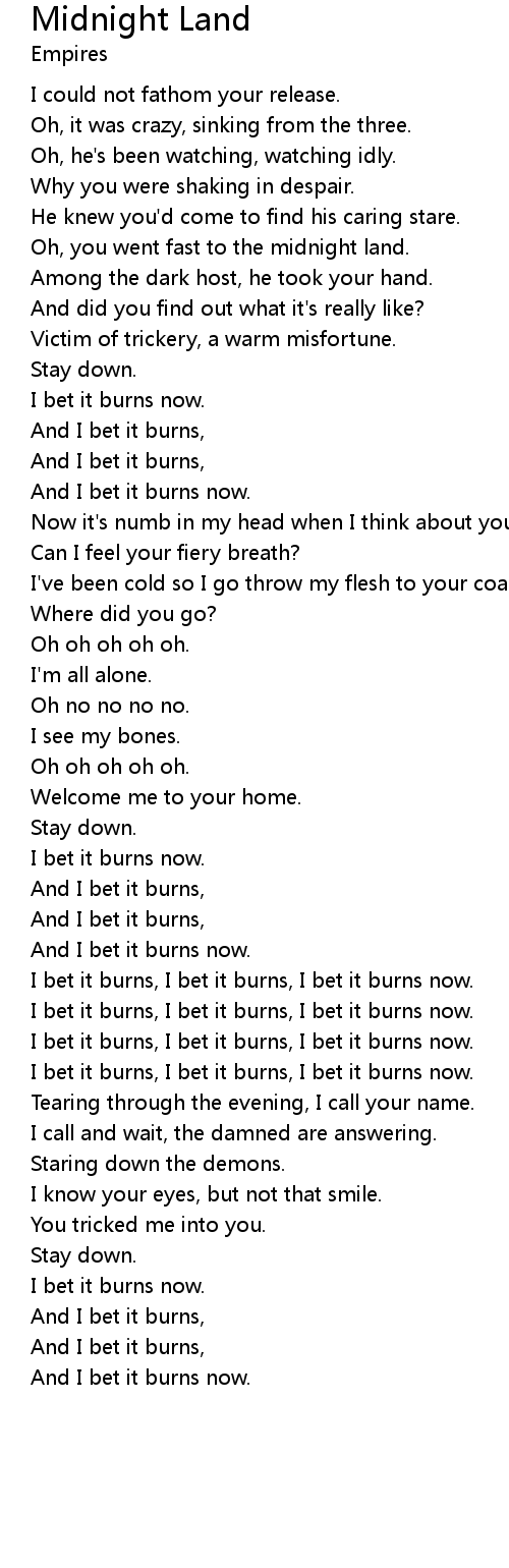 | Oh, you went fast to the midnight land. | |