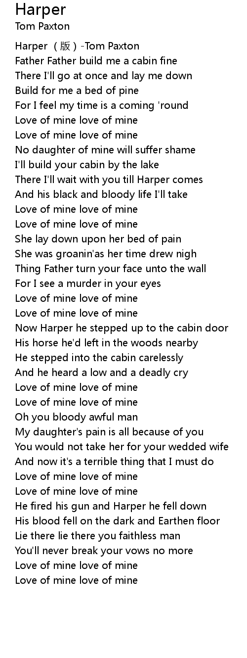 | [00:00.00] | Harper (版)-Tom Paxton |