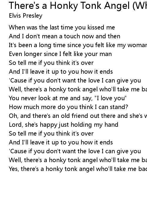 Well, there's a honky tonk angel who'll take me back in |