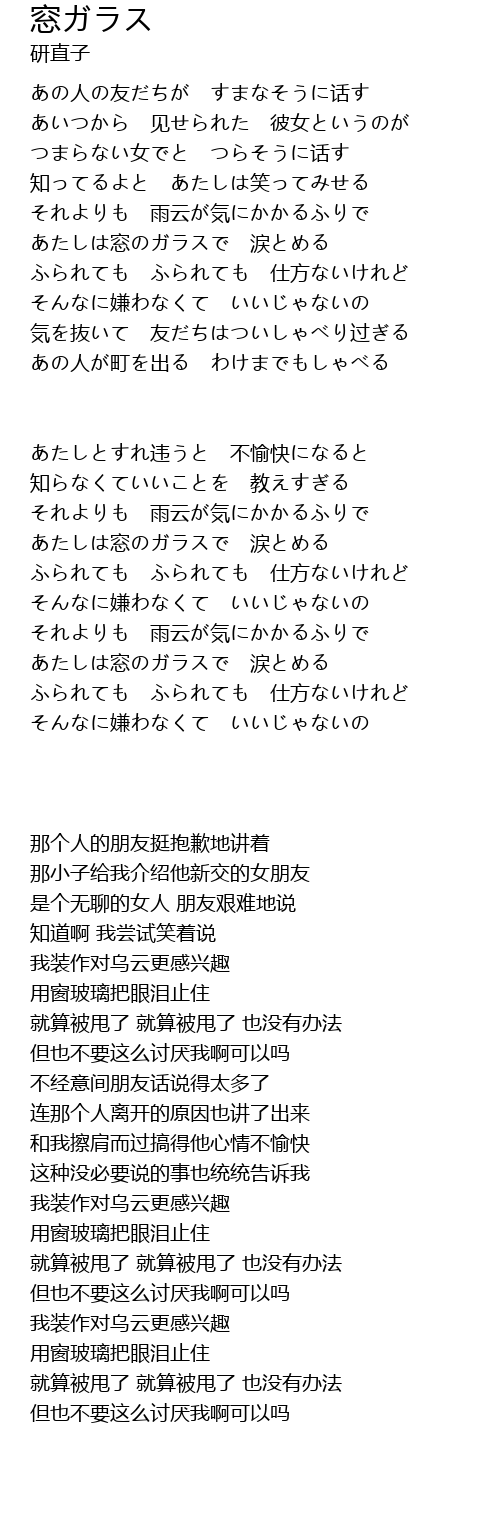 あたしは窓のガラスで 涙とめる |