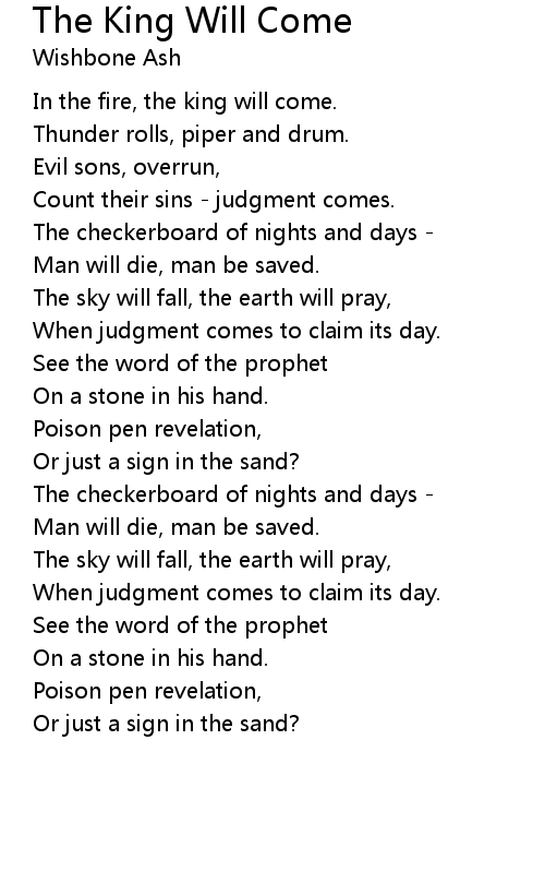 The King Will Come Lyrics
