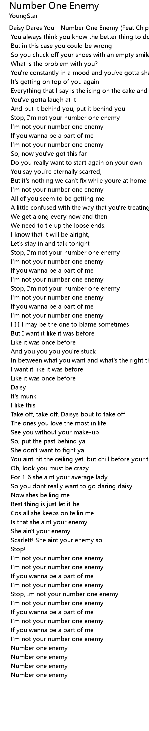 Daisy Dares You - Number One Enemy (Feat Chipmunk) |