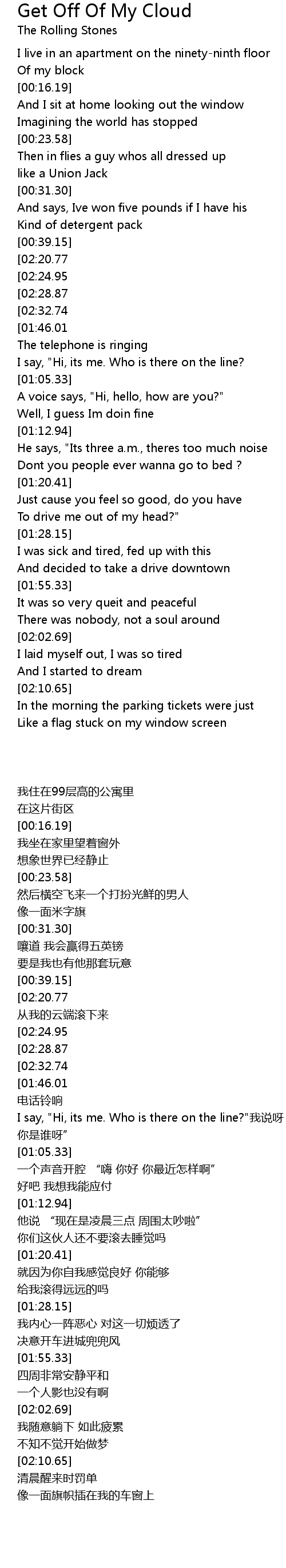 [02:43.93][02:28.87][01:39.20][00:49.57] Hey! You! Get off of my cloud