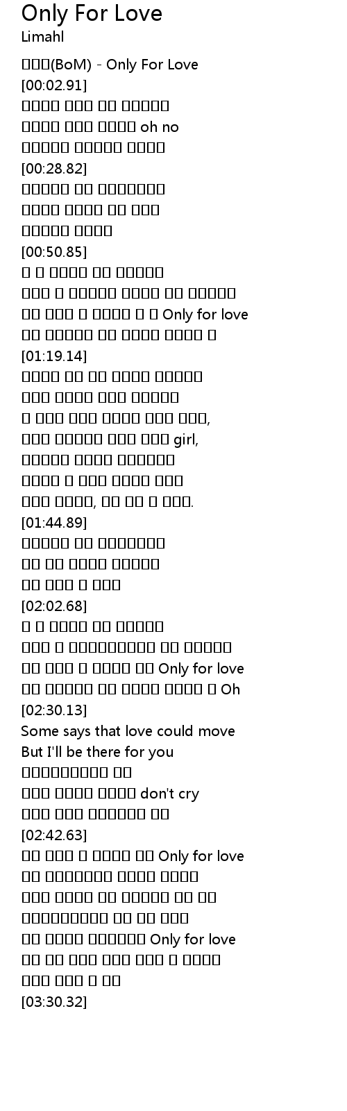 | [03:08.71] | 다신 눈물짓는 사랑없을거야 Only for love |
