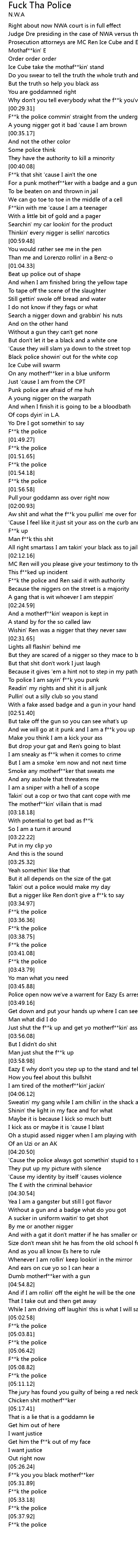 F**k the police commin' straight from the underground |