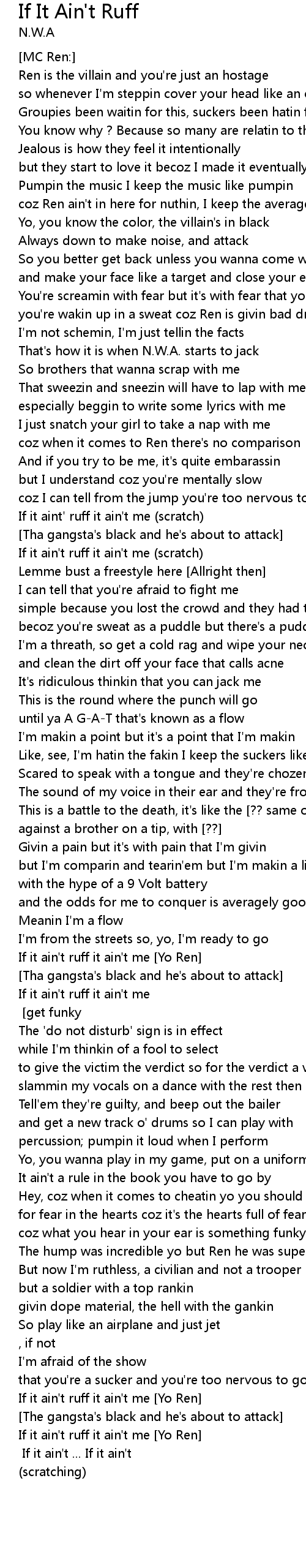 If it aint' ruff it ain't me (scratch) |
