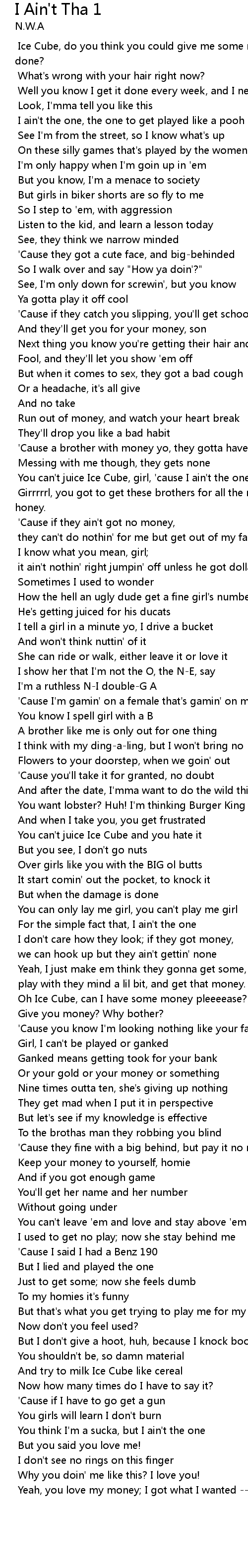 [01:22.345] You can't juice Ice Cube, girl, 'cause I ain't the one