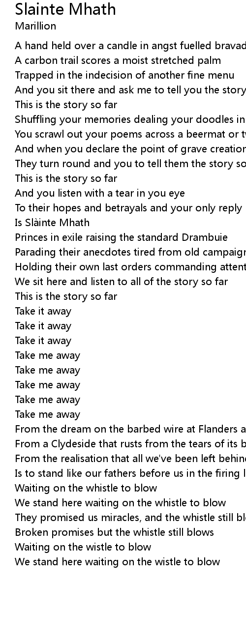 | Song | Slainte Mhath |