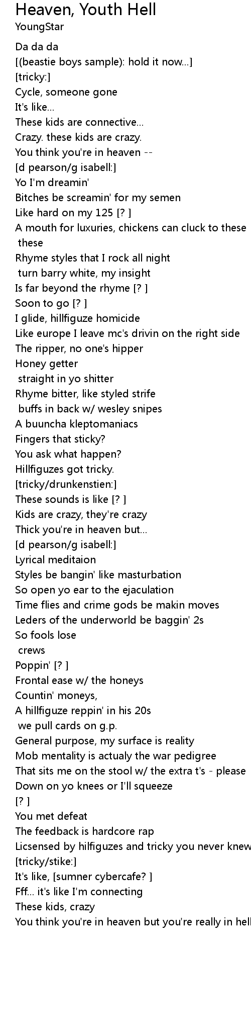 You think you're in heaven but you're really in hell [repeat till end] |