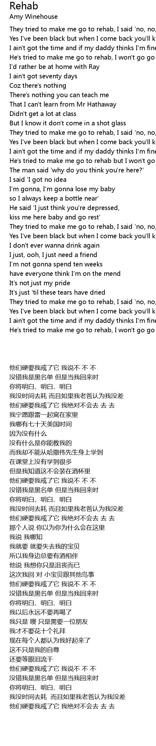 They tried to make me go to rehab, I said 'no, no, no' |