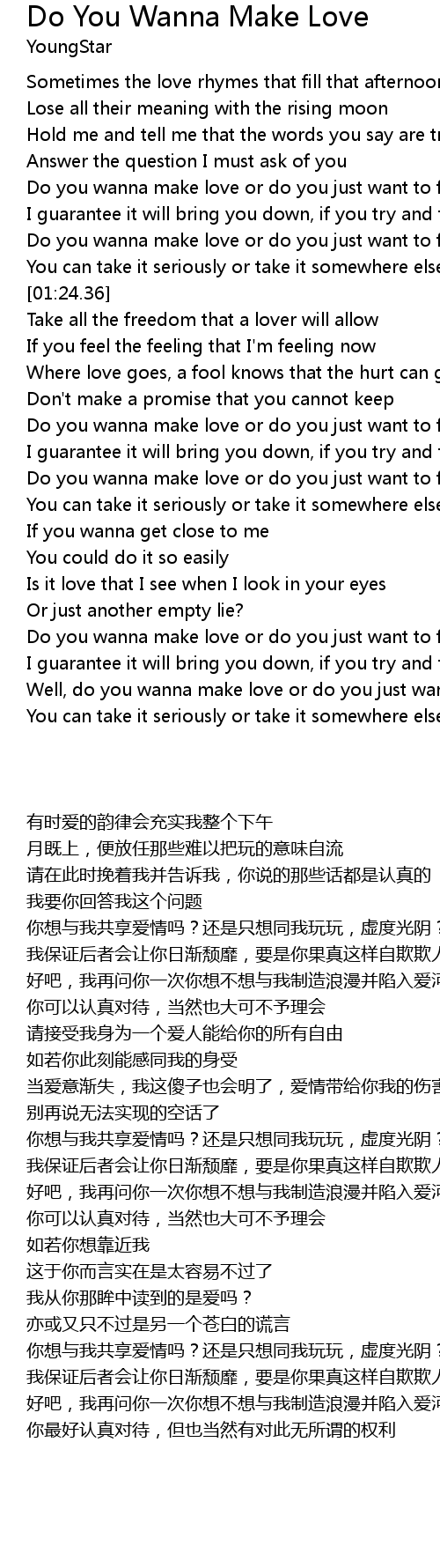 Do you wanna make love or do you just want to fool around? |