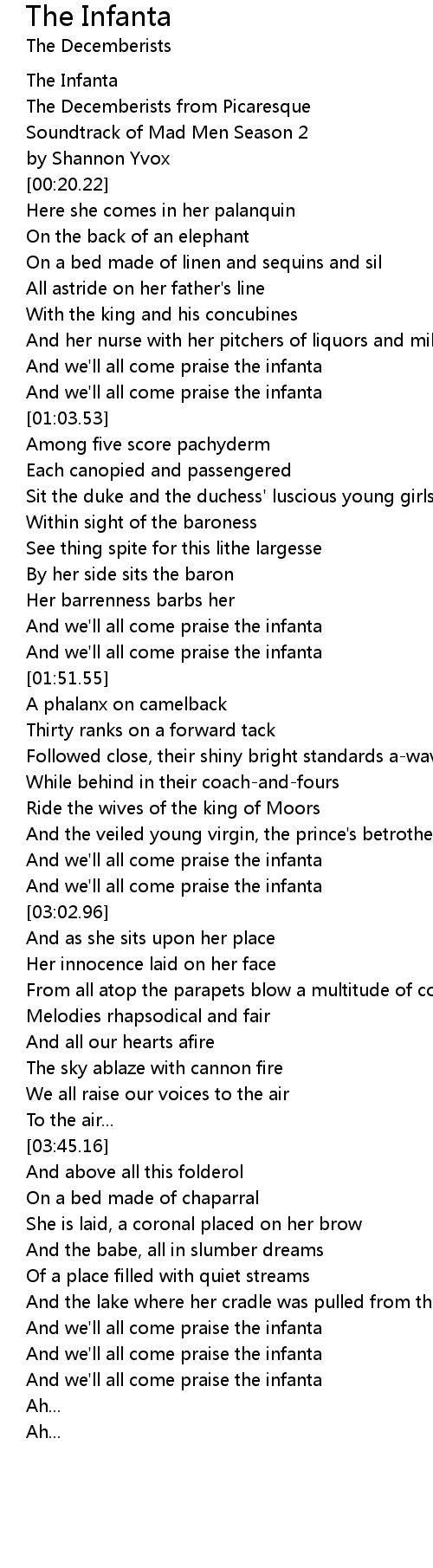 And we'll all come praise the infanta |