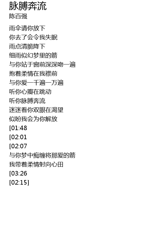 | [02:43][01:48] | 细雨下于窗前似那爱的箭 |
