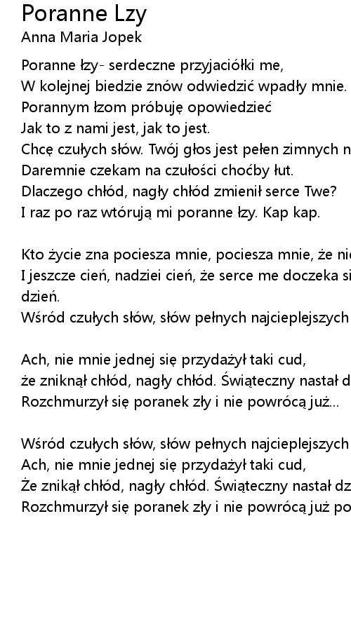| I raz po raz wtó ruj mi poranne zy. Kap kap. | |