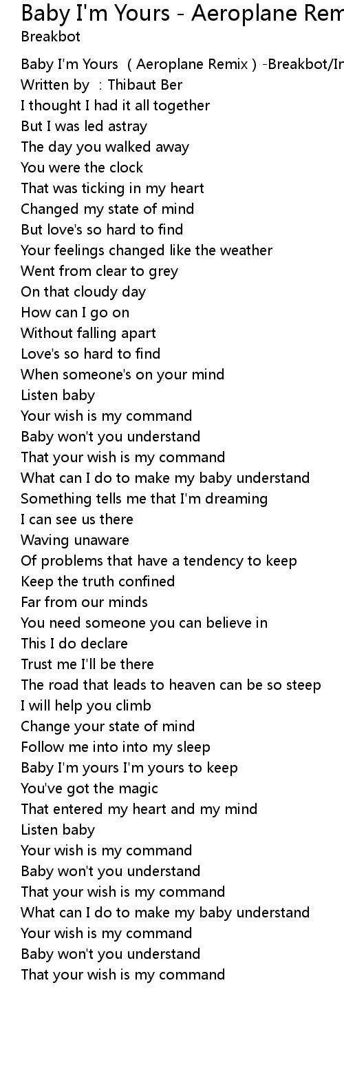 | [00:00.311] | Baby I' m Yours Aeroplane Remix Breakbot Irfane |