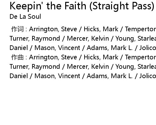 | [00:00.000] | zuo qu : Arrington, Steve Hicks, Mark Temperton, Rodney Lynn Turner, Raymond Mercer, Kelvin Young, Starleana Lockett, Thomas Webster, Daniel Mason, Vincent Adams, Mark L. Jolicoeur, David |
