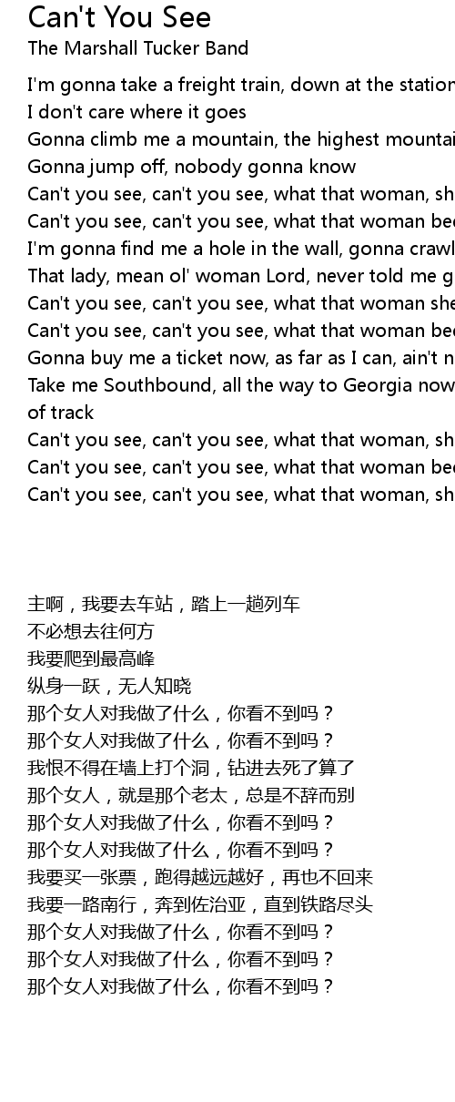 Can't you see, can't you see, what that woman, she been doin' to me |