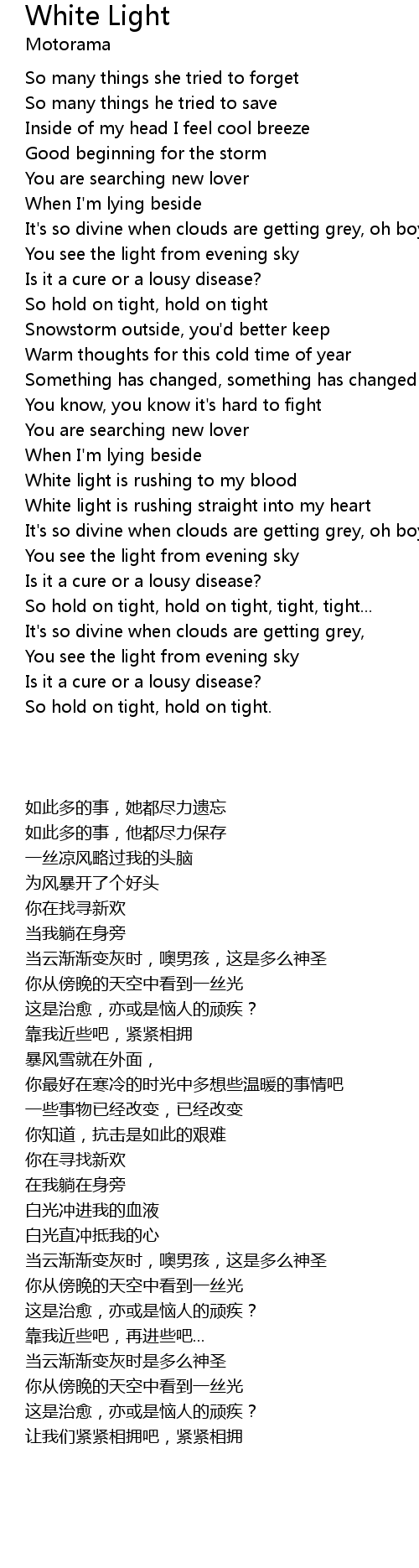 | [02:22.94] | White light is rushing to my blood |
