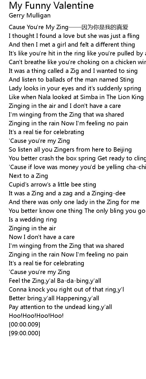 | [00:59.38] | And there was only one lady in the Zing for me |