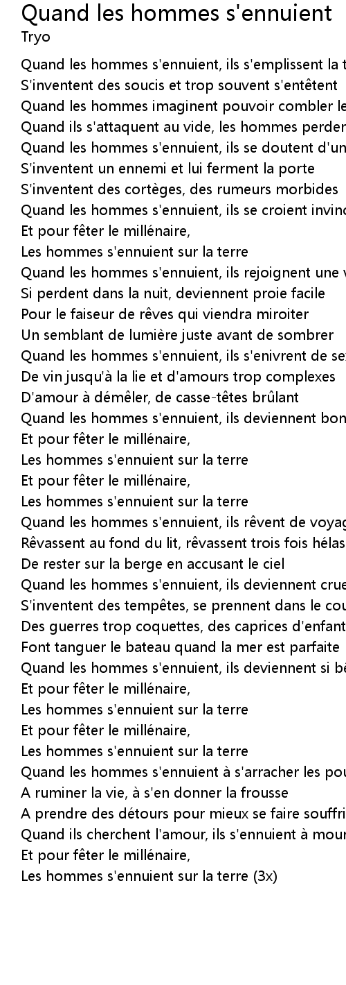 | Song | Quand les hommes s'ennuient |