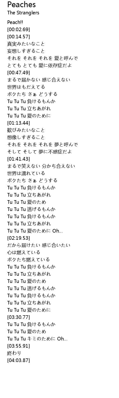 | [03:24.83] | Tu Tu Tu 立ちあがれ |