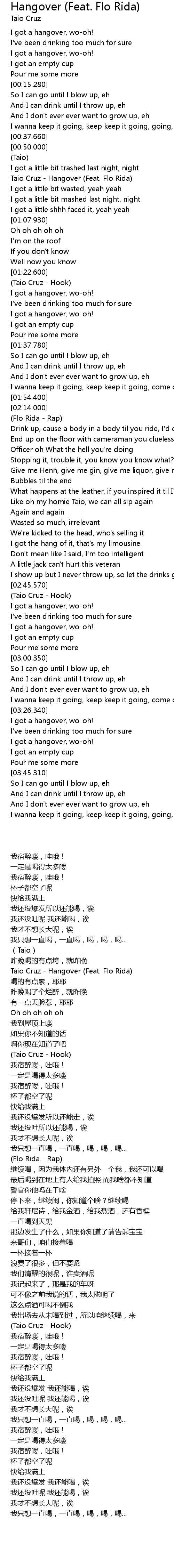 | [00:55.000] | Taio Cruz - Hangover (Feat. Flo Rida) |